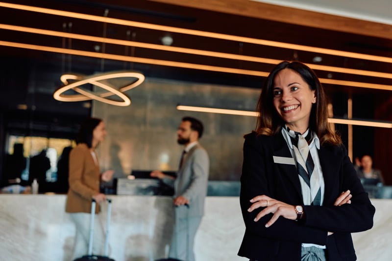 Our management and front-of-house team deliver a refined, professional appearance. Crafted from comfortable, easy-care fabrics, our corporate suiting is ideal for customer-facing environments where presentation matters. Coordinated branding on scarves and ties helps elevate your client-facing team while creating a cohesive look that reinforces your organisation’s identity.